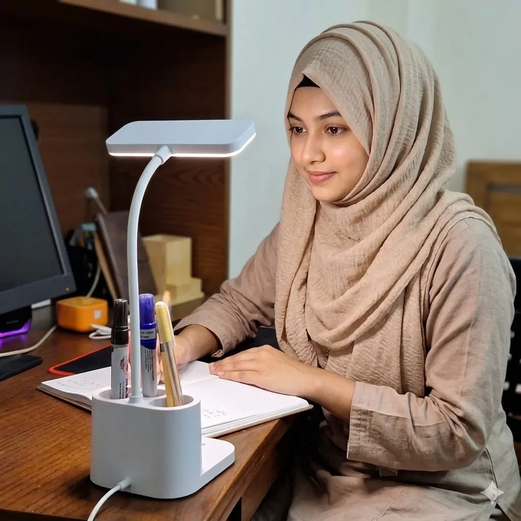 🌟 মাল্টিফাংশনাল ডেস্ক ল্যাম্প প্লাস পেন হোল্ডার শুধু আলো দেওয়ার জন্য নয়—এটি আপনার ডেস্কের স্মার্ট সঙ্গী। আধুনিক চাহিদা মাথায় রেখে এটি তৈরি করা হয়েছে যেখানে রয়েছে রিচার্জেবল লাইট,পেন স্টোরেজ, চার্জিং ও ফোন হোল্ডার সব একসাথে।