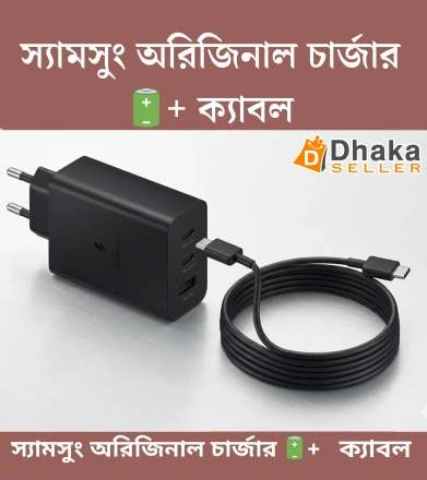 🟥 আপনার স্মার্টফোন, ট্যাবলেট বা অন্যান্য ডিভাইস দ্রুত এবং নিরাপদে চার্জ করার জন্য স্যামসাং অরিজিনাল 65W Tri-Port Super Fast Charger একটি নির্ভরযোগ্য সমাধান।