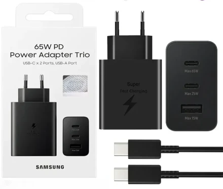 ♦️ স্যামসাং অরিজিনাল 65W ট্রাই-পোর্ট সুপার ফাস্ট চার্জার🔋 Type-C + USB-A | PD Fast Charging | Black