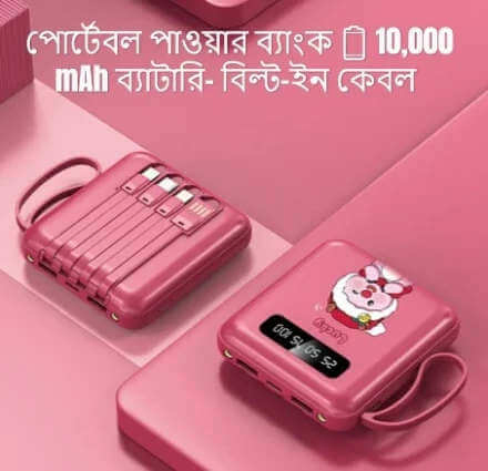 ⚡ যেকোনো সময়, যেকোনো জায়গায় পোর্টেবল পাওয়ার ব্যাংক – বিল্ট-ইন কেবল যুক্ত চার্জার কাম পাওয়ার ব্যাংক রাখুন হাতের নাগালে- থাকুন নিশ্চিন্তে